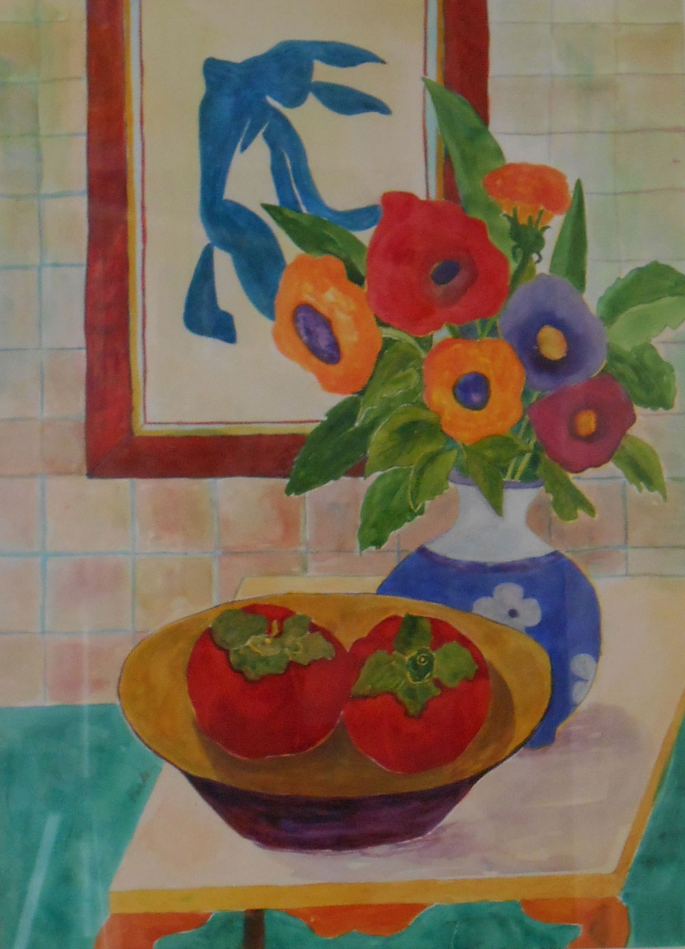 Persimmons 33 x 28 (watercolor matted framed)